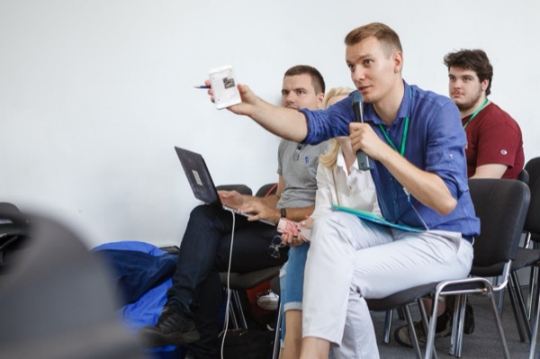 Первый сайт собираем вместе, в реальном времени. Каждый делает у себя то же, что показывает ведущий.